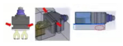 “通過卡槽定位裝配”D2GW開關(guān)與客戶部件裝配時(shí),開關(guān)本體的卡槽作為定位并可卡入,裝配十分簡易。并且和其他通過定位柱或定位孔安裝的產(chǎn)品相比,通過卡槽與客戶部件裝配,可以使客戶的部件設(shè)計(jì)更加小巧。