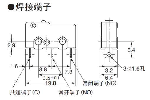 小型微動開關(guān)有分焊接端子,接線端子,印刷基板用端子,而焊接端子在焊接過程中的方法及注意點我們來學(xué)習(xí)一下:在焊接過程中的方法焊接端子型1:根據(jù)焊接端子的耐熱性來區(qū)分的一種類型,滿足下面的試驗條件。