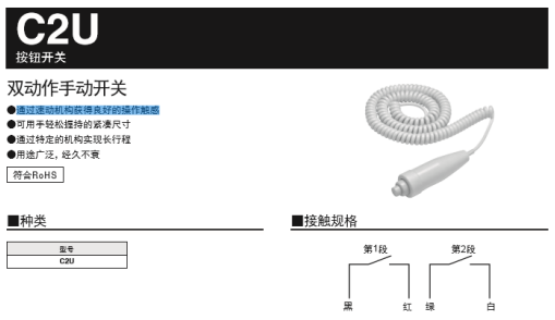 例如歐姆龍的C2U按鈕開(kāi)關(guān),他能通過(guò)特定機(jī)構(gòu)實(shí)現(xiàn)長(zhǎng)行程,通過(guò)速動(dòng)機(jī)構(gòu)獲得良好的觸感,尺寸也可用手輕松握持,能給客戶很好的使用體驗(yàn)。
