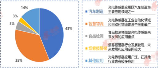 光電傳感器行業(yè)鏈下游主要涉及汽車行業(yè)、智慧物流行業(yè)、食品檢測行業(yè)、煙霧報警器(如圖1)。