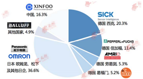 中國光電傳感器企業(yè)主要分布在長江三角洲地區(qū),以上海、無錫、南京為中心,形成了光電、熱敏、圖像、溫度等較為完備的傳感器生產(chǎn)和產(chǎn)業(yè)配套體系,產(chǎn)品以低端傳感器為主。中國是光電傳感器制造大國,本土企業(yè)光電傳感器核心技術(shù)掌握程度低。本土企業(yè)以作坊式和 OEM 生產(chǎn)為主要生產(chǎn)模式,生產(chǎn)產(chǎn)品多為中低端產(chǎn)品。中低端產(chǎn)品生產(chǎn)企業(yè)以成本為主要優(yōu)勢,導(dǎo)致中低端產(chǎn)品價格競爭激烈??鐕髽I(yè)則掌握核心制造技術(shù),加之檢測工藝嚴謹,產(chǎn)品質(zhì)量高于本土產(chǎn)品。激光紅外傳感器等高端傳感器的核心技術(shù)的掌握賦予了德國和日本企業(yè)高競爭力,導(dǎo)致高端傳感器市場份額主要由德國和日本企業(yè)占據(jù).(如圖2)