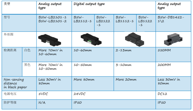 歐姆龍B5W-LB系列備有抗干擾性強、支持DC24V產(chǎn)品,備有搞干抗性強、適用商用設備,其連接簡單,ON/OFF輸出,可直連接在PLC等控制設備。支持廣泛的應用。IP50,耐灰塵,支持應用廣。