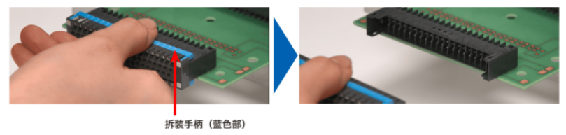 特征2單手操作:通過(guò)沿連接器手柄方向安裝拆裝手柄,可輕松單手插拔連接器。