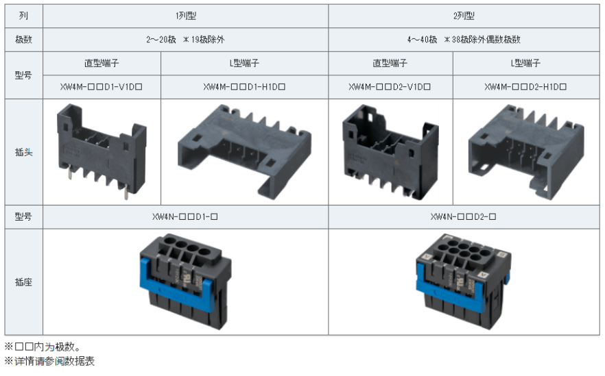 1、XW4M/XW4N系列是一款推入型端子臺(tái)基板用連接器。