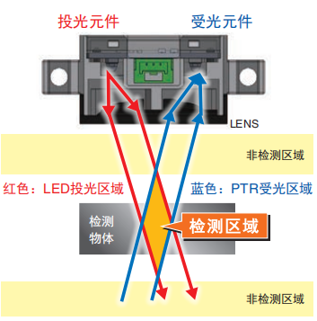 歐姆龍新推出傳感器B5W(原理如圖)是一款不易受顏色和材質(zhì)影響的限定反射型。 鏡面、黑色、透明物體也都會檢測出來限定位傳感器,檢測范圍廣,因此耐物體位置偏移強不易受外部干擾影響。接受來自檢測物體的反射光以檢測物體有無,擁有限定了投光光束和受光區(qū)域的光學系統(tǒng)。支持DC24V的設備內(nèi)置用,憑借由4種超環(huán)面透鏡組成的歐姆龍自行設計的結(jié)構(gòu),只需微弱的光即可實現(xiàn)穩(wěn)定檢測。