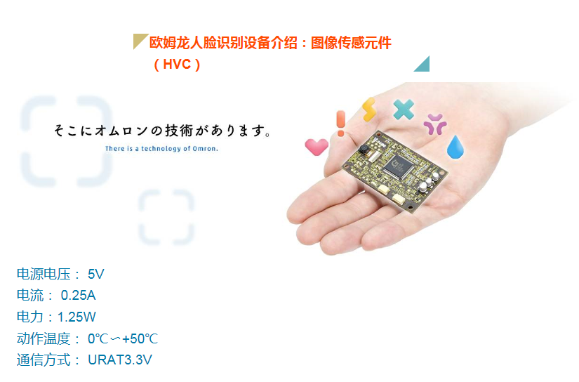 在人臉識別設(shè)備裝載型圖像傳感元件“HVC(Human Vision Components)”中,集成了面部認(rèn)證、表情推測、手部檢測等可以識別個人狀態(tài)的圖像傳感技術(shù)“OKAO Vision”,其中包括10種算法和相機(jī)模塊。只需裝載到現(xiàn)有的設(shè)備中,即可在原有功能的基礎(chǔ)之上,添加智能識別人臉的功能。