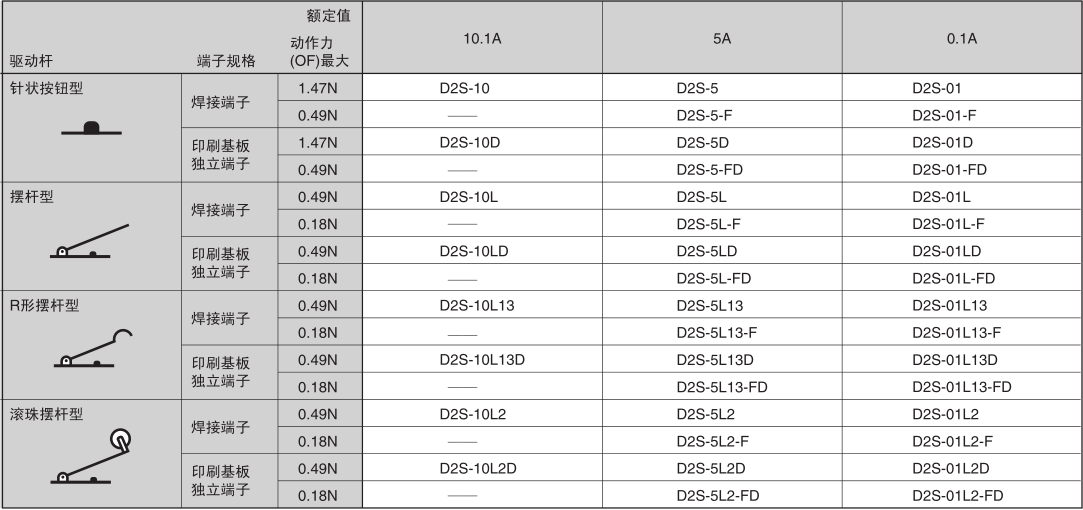 歐姆龍微動開關, D2S-10,歐姆龍微動開關D2S