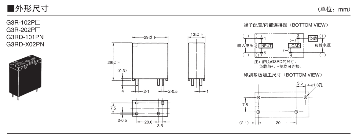 G3R 印刷基板用SSR。與G2R功率繼電器同一形狀
