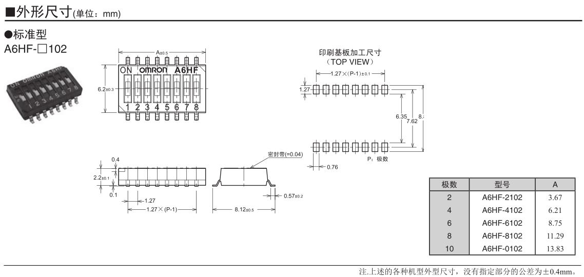 歐姆龍DIP開關, A6HF-2102,歐姆龍DIP開關A6HF