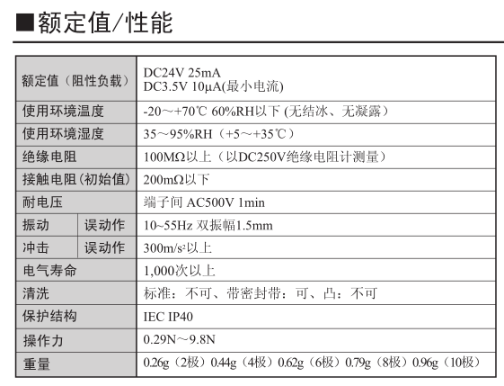 ? 接點部分為鍍金雙接點,通過動作的自清潔構造,確保了高可靠性。