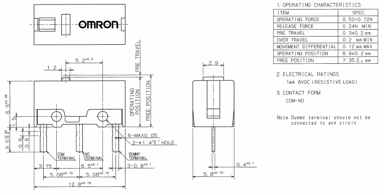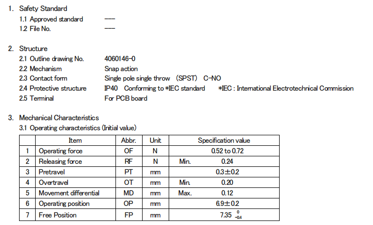D2FC-F-7N (20M) 克力為:60+/-15G,壽命為2000萬(wàn)次;