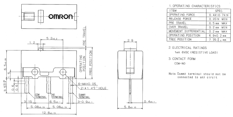 印刷基板用端子還備有獨(dú)立端子、直角端子。鼠標(biāo)開關(guān)的型號(hào)有: