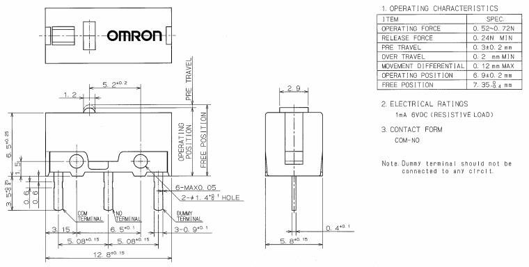 D2FC-F-7N, 克力為:60+/-15G,壽命為500萬次;