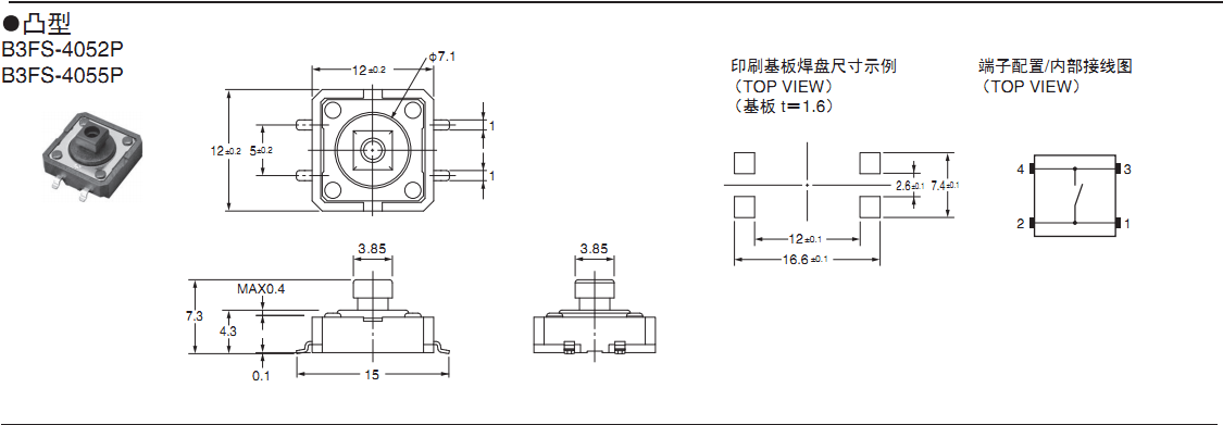 基板表面安裝型,備有6mm方形、壓花帶包裝型